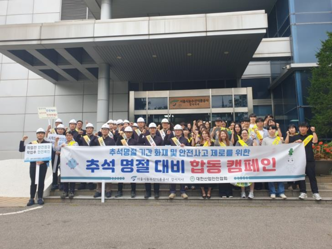 서울시농수산식품공사(사장 문영표, 이하 ‘공사’) 강서지사는 지난 9월 24일 추석 명절 대비 강서시장 화재 및 안전사고 예방을 위하여 대한산업안전협회 서울지역본부와 함께 합동 캠페인을 실시하였다.