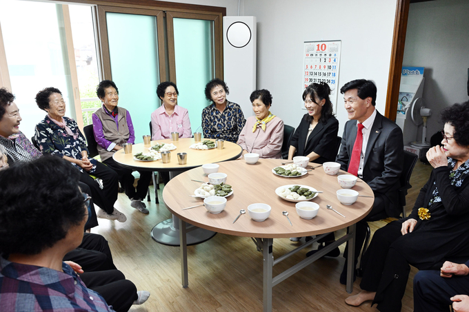 안병구 밀양시장이 2일 추석을 앞두고 내이 4·8통 경로당을 찾아 어르신들께 명절 인사를 드리고 있다.