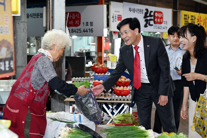 2일 안병구 밀양시장이 추석을 앞두고 민생 현장을 살펴 보기 위해 밀양아리랑시장을 방문했다.