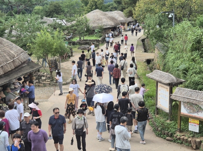 추석 연휴 순천 낙안읍성이 많은 관광객들로 붐비고 있다.