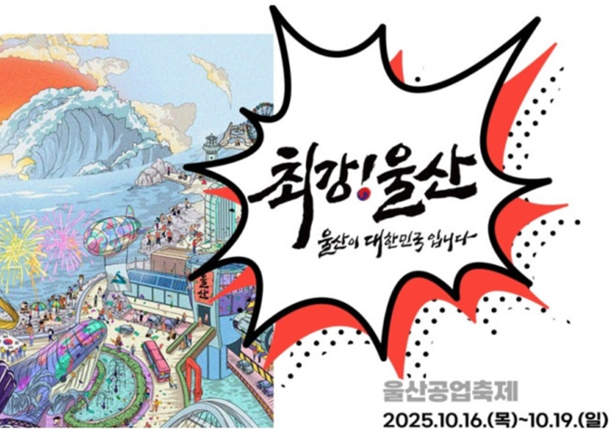 2025 울산공업축제는 ‘최강! 울산’이라는 이상(비전)과 ‘울산이 대한민국입니다’를 구호로 오는 10월 16일부터 19일까지 나흘간 울산시 전역에서 펼쳐진다.
