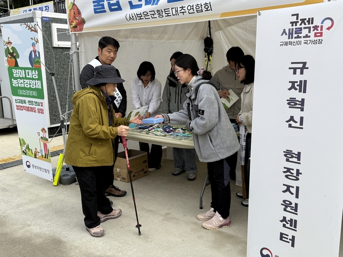 중부지방산림청은 10월 24일 보은군 뱃들공원 일원에서 진행되고 있는 보은대추축제에서 임업인을 대상으로 산림분야 제도 개선 사항을 알려드리고 어려운 점을 직접 들어보고자 규제혁신 지역모니터링을 진행했다.