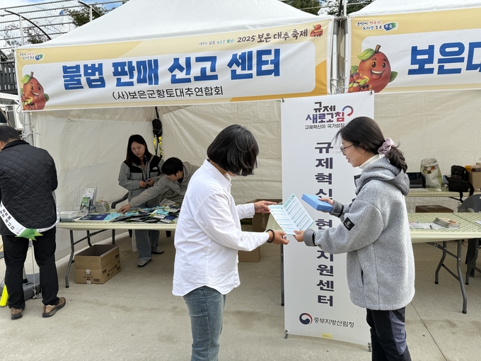 중부지방산림청은 10월 24일 보은군 뱃들공원 일원에서 진행되고 있는 보은대추축제에서 임업인을 대상으로 산림분야 제도 개선 사항을 알려드리고 어려운 점을 직접 들어보고자 규제혁신 지역모니터링을 진행했다.
