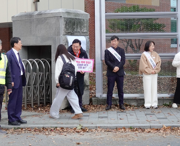 전 군수는 이른 아침 시험장으로 향하는 수험생들을 맞이하며 “그동안 쌓아온 노력과 열정을 믿고 끝까지 최선을 다하길 바란다”며 “오늘을 위해 애써주신 모든 분들께 깊이 감사드리며, 오늘의 결과가 앞으로의 큰 도약으로 이어지길 응원한다”고 격려의 메시지를 전했다.