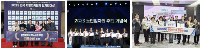 특히 인천은 노인일자리 종합평가*에서 전국 ‘대상’을 수상하며, 고령사회에 대응하는 고용 정책에서도 최고 수준의 성과를 기록했다. 이는 일자리 수 자체보다 민관 협력과 지역 맞춤형 모델을 통해 지속 가능한 고용 구조를 구축했다는 점이 높이 평가된 결과다.