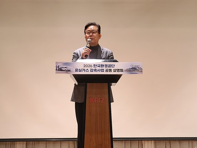 한국환경공단은 7일 서울 마포구 중소기업DMC타워에서 “2026년 온실가스 감축사업 공동 설명회”를 개최했다.(한국환경공단 윤용희 기후대기이사)