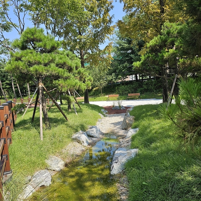 먼저 ‘군마근린공원’은 조성 이후 10년 이상 경과하며 시설 노후와 이용 불편이 이어진 가운데, 2023년 도시숲 리모델링을 통해 기능을 재정비했다. 휴게쉼터 조성과 수목 식재, 레인가든 및 경관형 수경시설 설치 등 녹지 요소를 보완해 도심 속에서 휴식과 여가를 누릴 수 있는 공간으로 활용도를 높였다. 경원선과 국도, 주거지가 인접한 입지를 고려해 녹지를 확충하고 소음 완화 기능을 강화한 점도 특징이다.
