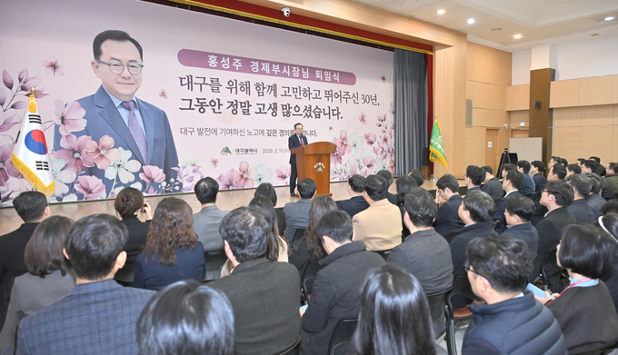 홍성주 대구광역시 경제부시장은 이날 퇴임 인사를 통해 “시청 가족들이 있어 길었던 공직생활을 아름답게 마무리할 수 있었다”며 감사를 표했다.