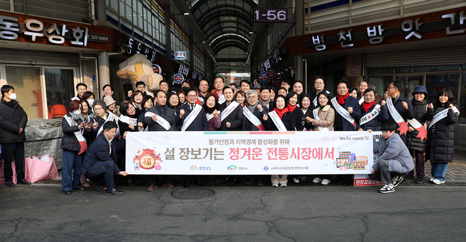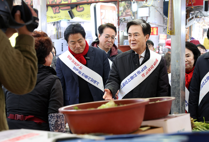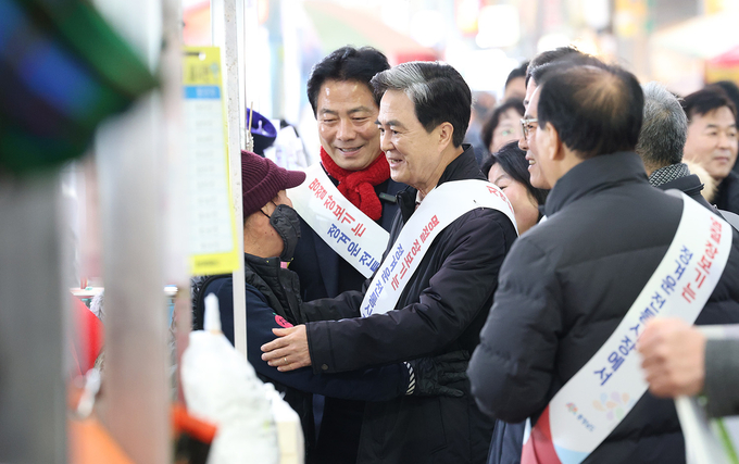 설 명절을 앞두고 김태흠 충남도지사가 전통시장을 찾아 상인들과 소통하며 현장의 목소리를 청취했다.