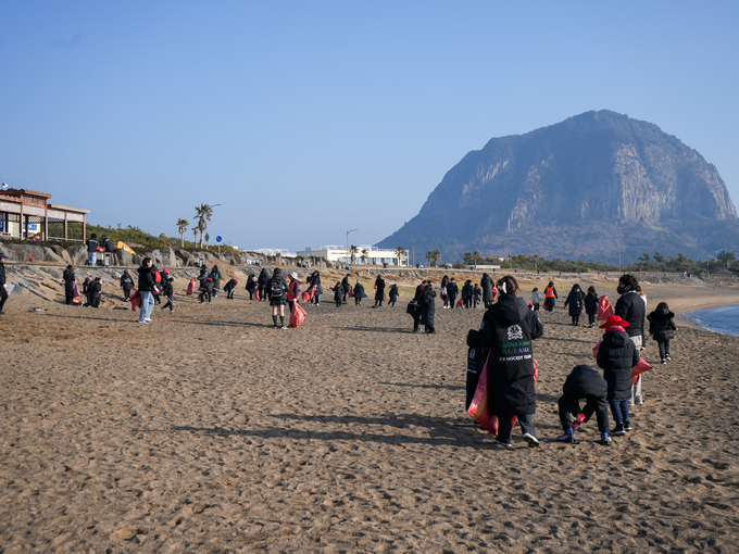 행사는 안전교육 및 준비운동, 연안정화활동, 해양환경교육 순서로 진행됐으며 참석자는 사계해변 일대를 돌아다니며 폐그물, 목재, 폐플라스틱 등 해안쓰레기 약 200kg을 수거했다.