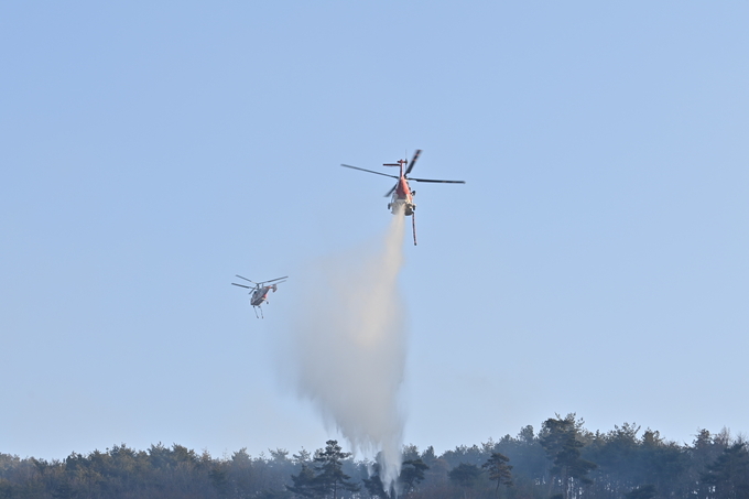 도는 소방 대응 2단계를 발령하고, 헬기 11대와 진화 차량 20대, 서산시 공무원과 소방관 등 인력을 집중 투입해 산불 진화 작업을 펼쳤다.