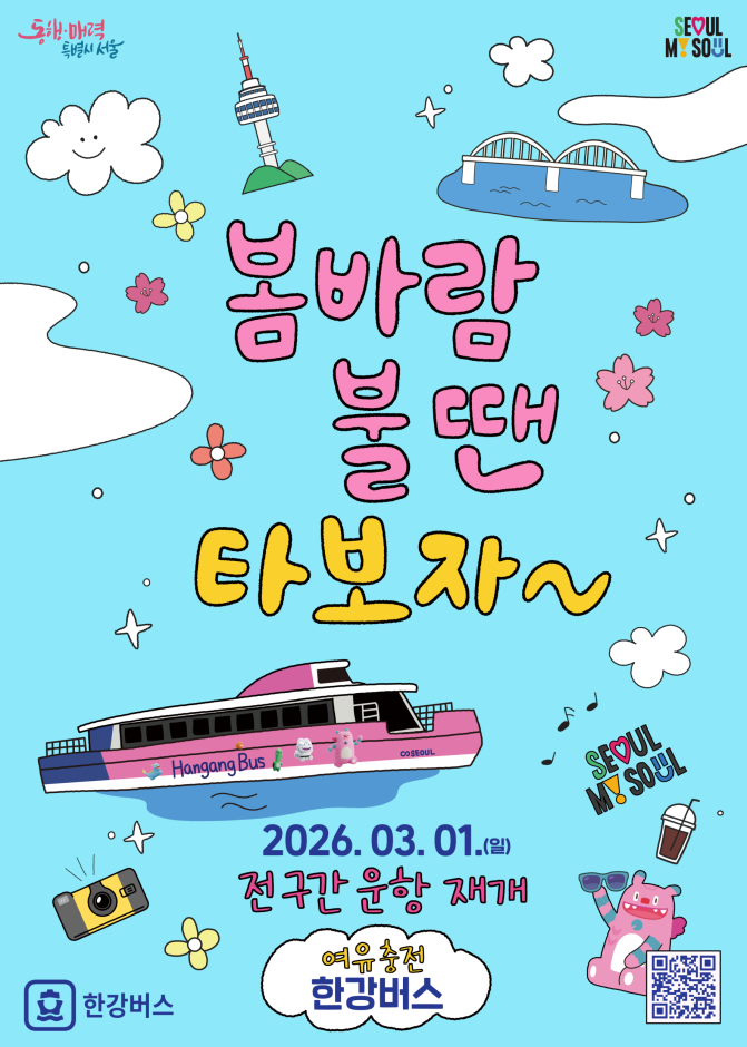 한편 ㈜한강버스는 만 65세 이상 한강버스 이용객을 대상으로 3월 3일부터 13일까지 열흘 간 서비스 개선을 위한 설문조사 이벤트를 실시하여 참여자에게 무료 탑승 기회를 제공한다. 다만, 선착장 승객 밀집에 따른 안전성 확보를 고려하여 주말을 제외한 평일에만 무료 탑승이 가능하다.