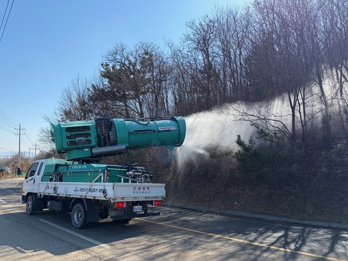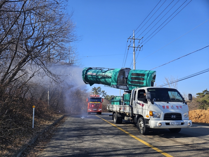 충남소방본부와 서산시는 장기화되는 건조특보와 강풍으로 산불 위험이 커짐에 따라 산불 발생 가능성을 사전에 차단하고자 광역 방제기를 활용한 예비주수 활동을 본격 추진한다고 2일 밝혔다.