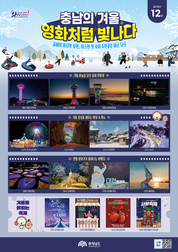 충남도가 ‘충남의 겨울, 영화처럼 빛나다’를 주제로 올해 마지막 ‘월간 충남’ 관광 명소를 소개한다. 월간 충남 12월호에는 연말에 찾아가 볼만한 겨울 감성을 가득 담은 여행지를 담았다. ◇ 겨울 하늘을 담은 실내 전망대 찬 바람을 잠시 피해 따뜻한 실내에서 충남의 호수와 바다, 도심을 조망할 수 있는 실내 전망대는 겨울철 인기 있는 관광 명소다. 대표적으로 예산 예당호 전망대, 홍성 스카이타워, 태안 영목항전망대, 천안 타운홀전망대가 있다. 지난 10월 문을 연 예산 예당호 전망대는 지역 대표 특산물인 사과를 형상화한 70m 높이의 전망대로 최상층에서 출렁다리와 음악분수, 모노레일을 한눈에 내려다볼 수 있다. 예산 여행 코스는 덕산 메타세콰이어길 → 덕산온천 족욕장 → 예당호 전망대 → 예당호 모노레일 → 예산상설시장을 추천한다. 홍성 스카이타워는 65m 높이의 전망대로 남당항을 넘어 보령까지, 북쪽으로는 궁리포구 뒤 서산까지 서해 전경을 조망할 수 있고 천수만의 수려한 경관과 붉게 물드는 서해의 낙조를 볼 수 있다. 홍성 여행 코스는 죽도 → 남당항 해양분수공원 → 남당항 해양수산복합공간 → 남당무지개도로·노을전망대를 추천한다. 해당화를 형상화한 태안 영