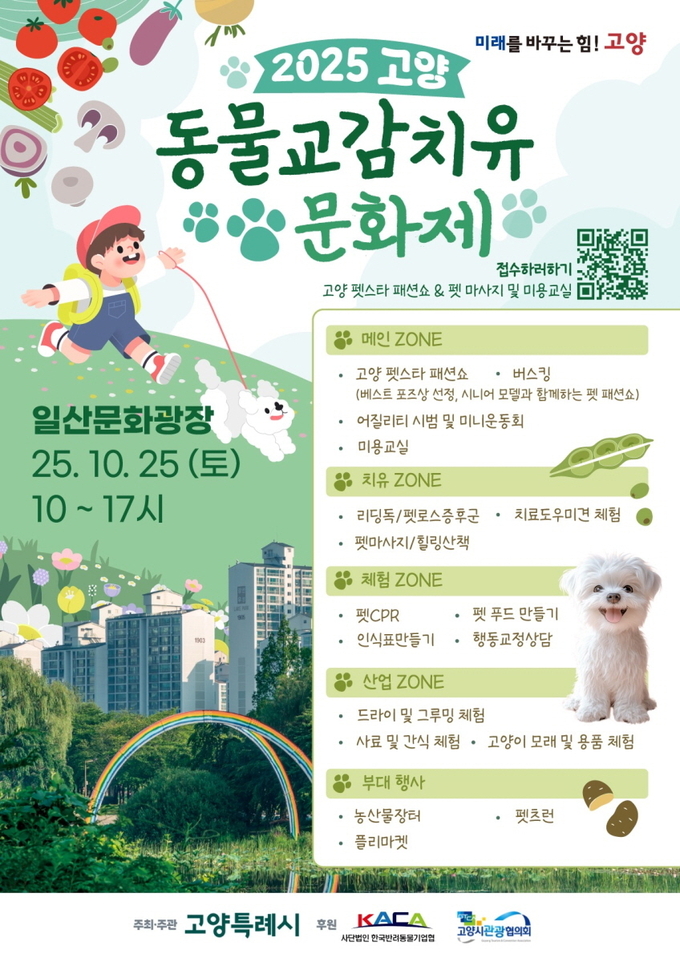 25일 일산문화광장에서는 ‘2025 동물교감치유 문화제’가 개최돼 사람과 동물의 마음을 풍성하게 채우는 치유와 교감의 장이 열린다.