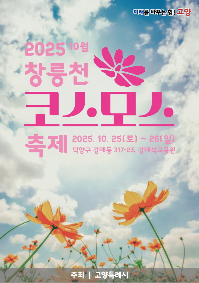 25일부터 26일까지 창릉천 강매석교공원 일원에서는 약 3만㎡ 규모로 펼쳐진 코스모스 물결이 시민들을 맞이한다. 높푸른 가을 하늘과 어우러져 장관을 이루는 꽃밭 어디에서 사진을 찍어도 ‘인생샷’을 남길 수 있다.
