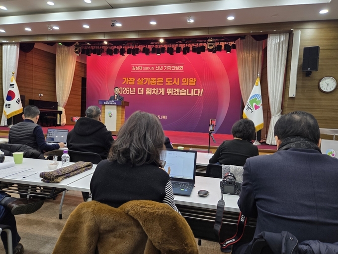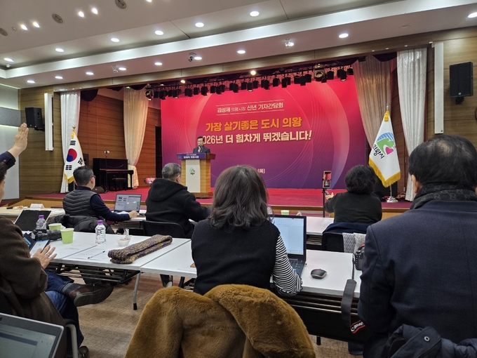김성제 의왕시장이 5일 시청 대회의실에서 2026년 신년 기자간담회를 열고 민선8기 의왕시 주요성과와 2026년 시정 운영방향에 대해 설명하는 시간을 가졌다.