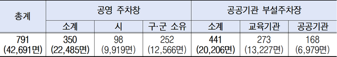 ❍ 공영 및 공공기관 : 2. 13(금) ~ 2. 18.(수) / 791개소(42,691면)