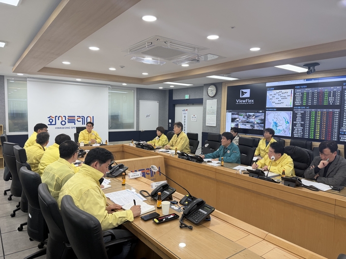 윤성진 화성특례시 제1부시장이 가축질병 재난안전대책본부 긴급회의를 하고 있다.
