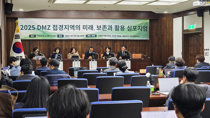 산림청 국립수목원(원장 임영석)은 국회의원 이인영 의원실, 서울대학교 환경계획연구소와 함께 11월 4일(화) 국회도서관 회의실에서 「2025 DMZ 접경지역 지속가능 발전 심포지엄」을 개최하고, 비무장지대(DMZ) 일원의 생물다양성 보전과 지속가능한 발전 방안을 논의했다.