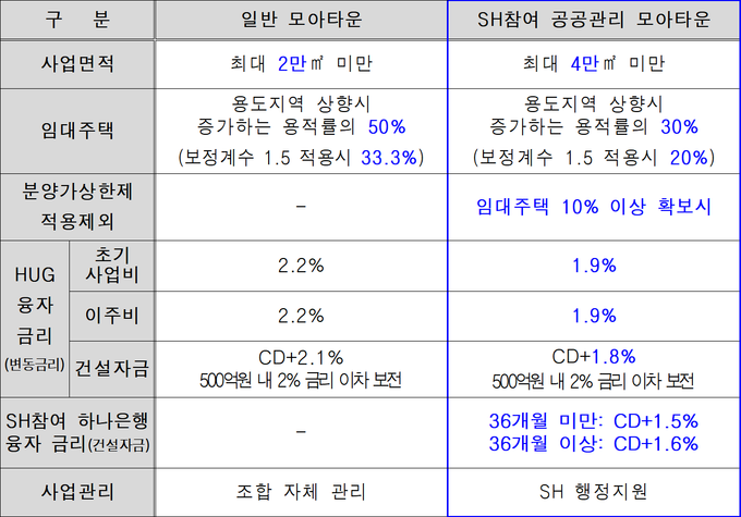 □ 「SH참여 공공관리 모아타운」 사업 인센티브