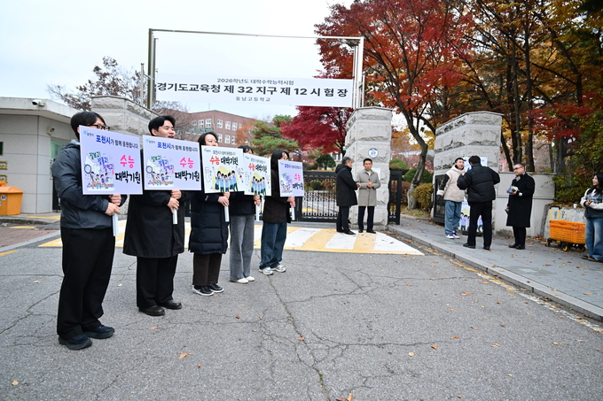 백영현 포천시장은 2026학년도 대학수학능력시험이 치러진 13일 아침, 관내 시험장인 동남고등학교를 찾아 수험생들을 응원하고 관계자들을 격려했다.