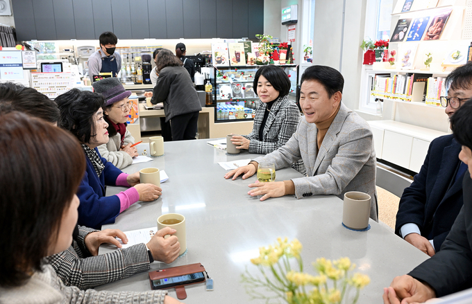 ▶김동근 시장이 12월 11일 의정부1동 주민센터 1층에 마련된 공유공간에서 주민들과 소통하고 있다.
