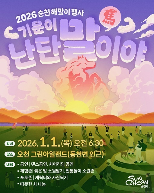 시 관계자는 “2026년 붉은 말의 해를 맞아 팔마의 도시 순천에서 시민 여러분과 함께 활기찬 새해를 열게 되어 뜻깊다”며, “이번 해맞이 행사를 통해 시민 모두가 적토마처럼 힘찬 발걸음으로 희망찬 순천의 내일을 함께 만들어 가는 계기가 되기를 바란다”고 전했다.