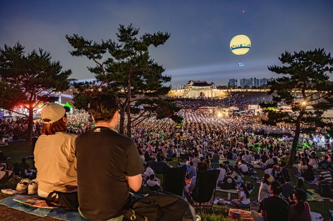 수원시민과 관광객들이 수원시 대규모 문화공연 중 하나인 수원화성헤리티지콘서트를 관람하고 있다.