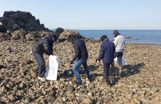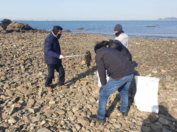 이번 방제작업은 지난 12일 국화도 인근 해상에서 발생지 미상의 오염물질이 조류를 따라 일부 해안가로 유입됨에 따라 실시됐다.