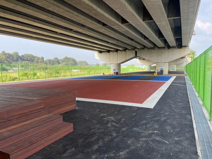 국도39호선 고가 하부에 조성된 대장동 스포츠콤플렉스