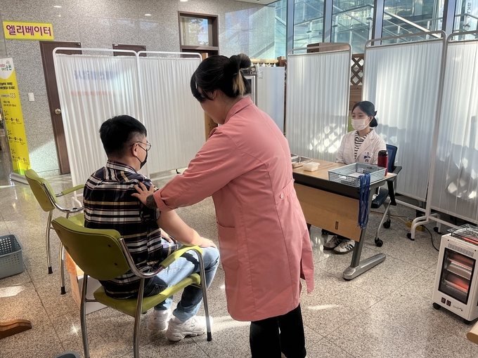 시민들이 순천시보건소에서 대상포진 예방접종 지원 서비스를 받고 있다.