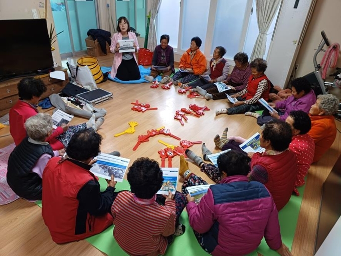 지역 어르신들이 순천시 망룡보건진료소에서 치매 예방 교육 등 다양한 건강증진 프로그램에 참여하고 있다.