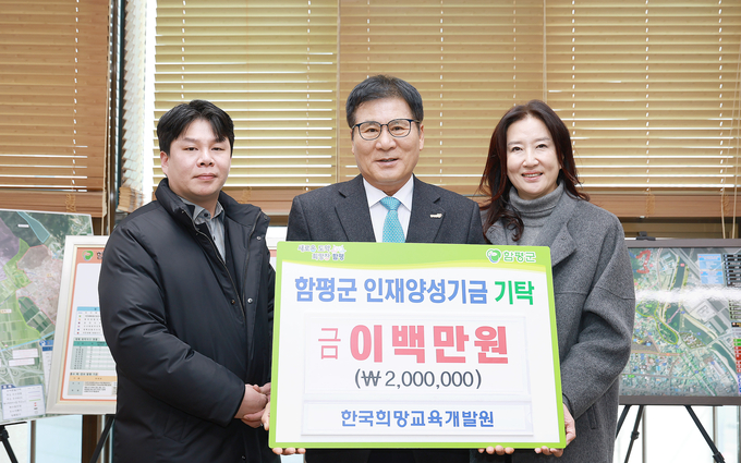 전남 함평군에 미래 인재 양성을 위한 장학금 기탁이 이어지며 추운 겨울 지역사회를 훈훈하게 만들고 있다.