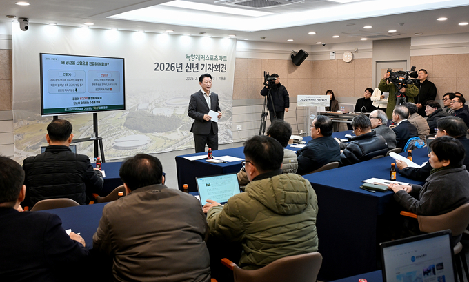 ▶의정부시는 2월 5일 시청 회룡홀에서 기자회견을 열고, 종합운동장 일대를 중심으로 한 ‘녹양레저스포츠파크’ 조성 비전을 발표했다.