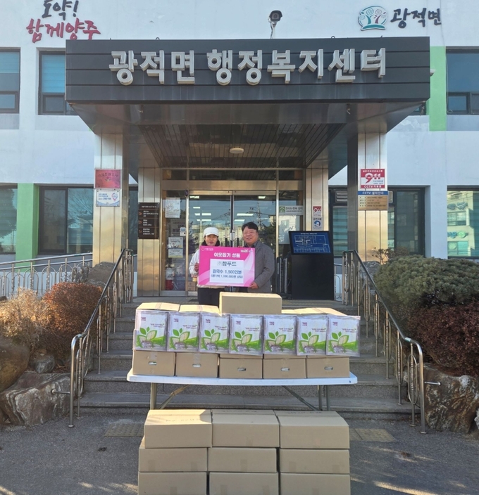 양주시 광적면(면장 이학남)은 최근 관내 면류 제조업체인 참푸드(대표 김란순)가 지역 이웃을 위해 칼국수 1,500인분(환가액 약 100만 원 상당)을 기부했다고 밝혔다.