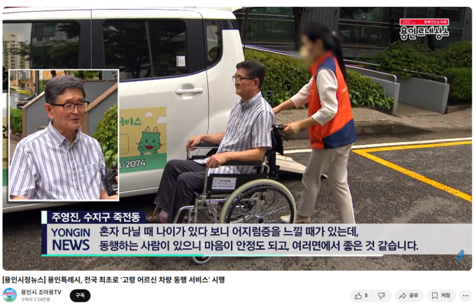이상일 시장은 “‘고령 어르신 병원 동행 서비스’는 어르신들이 가족의 도움 없이 안전하게 병원 진료를 받을 수 있는 환경을 구축한 점에서 노인 복지의 선도적 모델로 자리매김했다”며 “어르신들의 의료 접근성을 높이고, 가족의 돌봄 부담을 덜어드릴 수 있도록 지원하겠다”고 말했다.