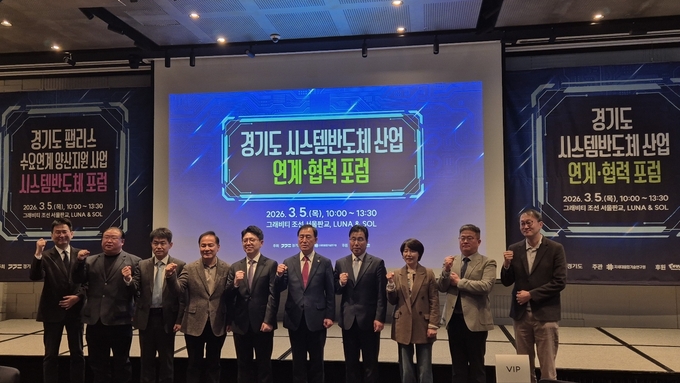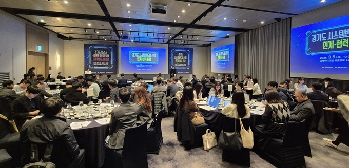경기도가 시스템반도체 산업 경쟁력 강화를 위해 5일 그래비티 조선 서울 판교에서 ‘경기도 시스템반도체 산업 연계·협력 포럼’을 열고 산업계·학계·연구기관 간 협력 방안을 논의했다.