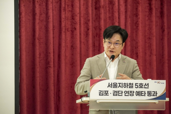 김병수 김포시장이 10일 기자회견을 열고 ‘서울5호선 김포검단연장의 예비타당성조사 최종 통과’를 밝혔다. 김포시에 따르면, 서울5호선 김포검단연장사업의 예비타당성조사가 10일 기획예산처 재정사업평가위원회에서 최종 심의·의결됐다. 이로써 서울5호선 김포검단연장사업이 본 궤도에 진입, 김포시에 서울 직결 중전철 노선이 처음으로 건설되게 된다.