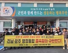 전남 무안군 일로읍·삼향읍 기관사회단체협의회는 28일 전남·광주 행정통합 추진과 관련해 합의 내용에 대한 규탄 성명서를 발표했다. 협의회는 지난 25일 열린 ‘광주·전남 행정통합 간담회’에서 주청사를 무안군에 위치한 전라남도청으로 한다는 잠정 합의가 있었음에도, 27일 간담회에서 “주청사를 특별시장 권한으로 둔다”는 발표가 나온 것은 무책임한 결정이라고 강하게 주장했다. 또한 협의회는 “전라남도청이 위치한 남악·오룡 신도시는 이미 전라남도의 주거·상권·교육 기능이 집약된 핵심 지역”이라며 “그럼에도 주청사가 배치되지 않을 경우 상권 위축과 지역경제 붕괴, 인구 감소로 이어져 지역 소멸을 초래할 수 있다”고 우려를 표했다. 이어 “이는 일로읍과 삼향읍과도 직결되는 중대한 사안”이라고 강조했다. 김명진 일로읍 번영회장과 나금남 삼향읍 이장협의회장은 “주청사 확정 없는 행정통합에는 동의할 수 없다”며 “전라남도청을 통합 광역행정의 주축으로 명확히 하고, 주청사가 전라남도청으로 확정될 수 있도록 끝까지 노력하겠다”고 밝혔다. ※ 사진설명: 1. 일로읍 기관사회단체규탄 성명서 발표 모습2. 삼향읍 기관사회단체 성명서 발표 모습(1) (2)