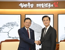대전·충남 행정통합이 급물살을 타고 있는 가운데, 특별시의 재정·권한 확대를 위해 전방위 활동을 펴고 있는 김태흠 지사가 이번엔 주무부처인 행정안전부를 찾았다. 김 지사는 6일 오후 정부 세종청사에서 윤호중 행안부 장관을 만나 ‘행정통합 간담회’를 가졌다. 이장우 대전시장과 함께 한 이날 간담회에서 김 지사는 최근 민주당이 발의한 ‘충남대전통합특별시 설치 법안’은 재정과 권한 이양이 대거 축소됐거나 변질됐다며 “재정·권한 이양 없는 통합은 ‘그럴듯하게 포장된, 무늬만 지방자치의 연장선’”이라고 비판했다. 그러면서 김 지사는 먼저 “항구적인 재정 제도 개편을 통해 특별시의 안정성을 도모해야 한다”며 양도소득세 100%, 법인세 50%, 부가가치세 5% 이양을 통해 연 8조 8000억 원의 추가 재원을 확보해 실질적인 재정 분권이 실현될 수 있도록 해줄 것을 요청했다. 중앙 권한 이양과 관련해서는 “지방이 스스로 문제를 직접 해결할 수 있는 실질적인 권한 부여로 지역 개발과 균현발전을 효과적으로 실현할 수 있도록 해야 한다”며 예비 타당성 조사와 투자심사 면제, 개발사업 인허가 의제, 특별지방행정기관 이관, 농업진흥지역 지정·해제 등이 대전·충남 행정통합 특별법